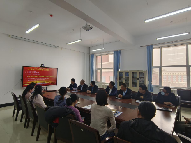 材院网讯(通讯员 董家明 张晓君)为全面学习贯彻习近平新时代中国特色社会主义思想,深入学习宣传贯彻党的二十大精神,进一步提振信心、凝聚力量,切实把思想和行动统一到党的二十大精神上来。2023年3月22日下午,学院在材料楼425会议室进行党的二十大理论宣讲,本次宣讲会由学院党委书记张学忠主讲,各系支部书记、教师代表参加。