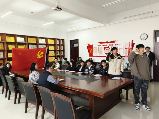 会议最后由宋雨泽、位明鑫同志带领新接收预备党员进行宣誓。