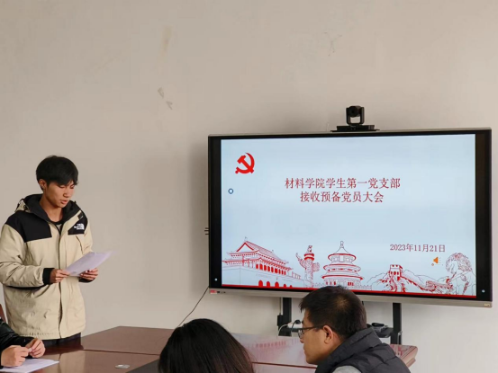 材院网讯(通讯员 郭耀东)为讨论并表决是否接收刘锦一、季伟等10名同志为中共预备党员,11月21日在材料楼425会议室召开学生第一、第二党支部支部大会。