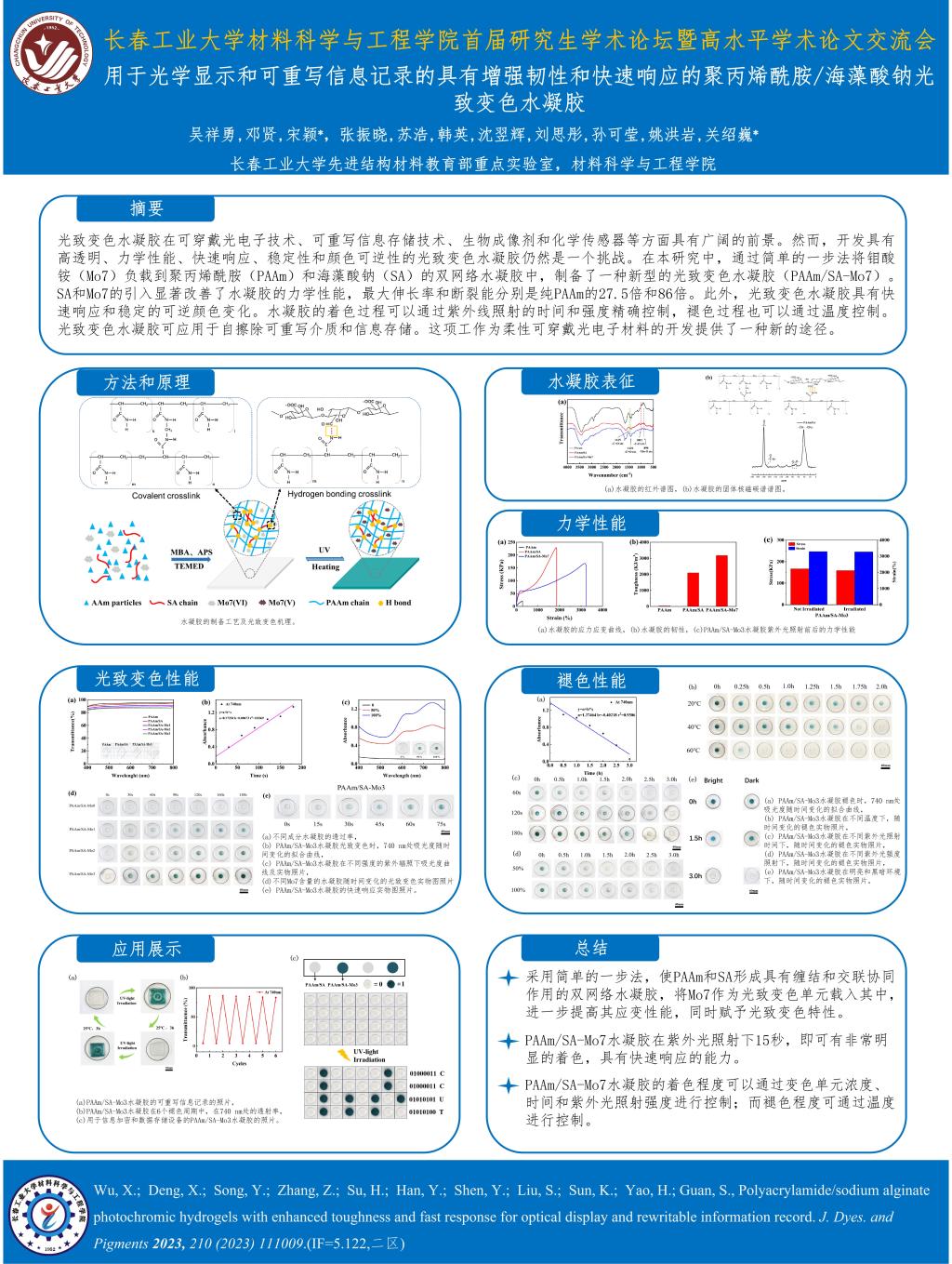 用于光学显示和可重写信息记录的具有增强韧性和快速响应的聚丙烯酰胺海藻酸钠光致变色水凝胶-yl6809永利官网集团首届研究生学术论坛暨高水平学术论文交流会