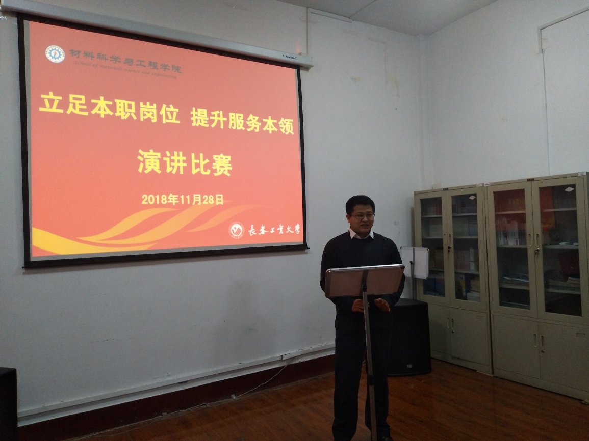 新闻网讯(通讯员邹绍岩)2018年11月27日下午13时30分,学院党委在材料楼5楼党员活动室开展了“立足本职工作岗位提升服务师生本领”演讲比赛。学院全体党员参加了活动。党委班子成员担任本次比赛的评委。此次演讲比赛活动由党委专职组织员邹绍岩主持。