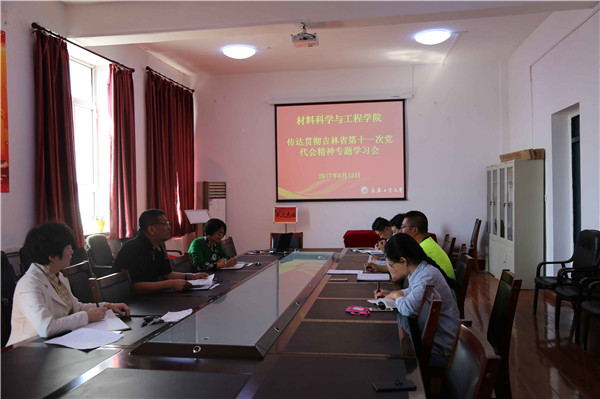 新闻网讯(通讯员 邹绍岩)2017年6月12日,材料学院在材料楼5楼会议室召开了传达贯彻吉林省第十一次党代会精神专题学习会,学院班子成员参加了学习会,会议由学院党委书记夏天民主持。