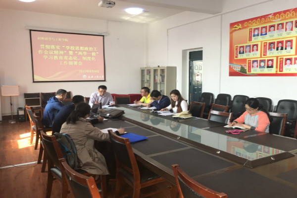 新闻网讯(通讯员张晓君 孟子博)2017年5月9日,材料学院召开“学校思想政治工作会议精神”暨“两学一做”学习教育常态化、制度化工作部署会。材料学院党委书记夏天民主持会议,党委副书记吴文东,各系党支部书记以及我院全体政工干部参会。