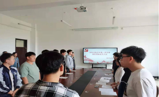 会议严格按照党组织接受预备党员程序。大会开始,由李爽老师介绍本次大会的主要内容始。根据大会议程,会议首先播放国际歌,全体奏唱国际歌。
