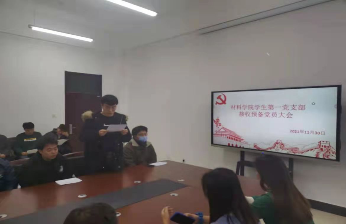 2021年11月30日yl6809永利官网集团学生第一党支部于材料楼425会议室召开接收预备党员大会。本次大会由支部书记李爽主持,支部全体党员参会。