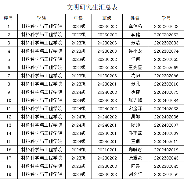 按照学校《关于开展2025年度研究生“三文明两优秀”评选工作的通知》相关要求,经过班级民主推荐、学校审核,现将拟推荐人选进行公示,公示期:2026年3月16日至3月18日。公示期内,如对人选有异议,请本人以书面形式或电子信箱反映问题,并请留下姓名和联系方式,否则不予受理。学院联系人:刘永帆,联系电话:0431-85716398 ,电子信箱:1639241542@qq.com。公示名单如下: