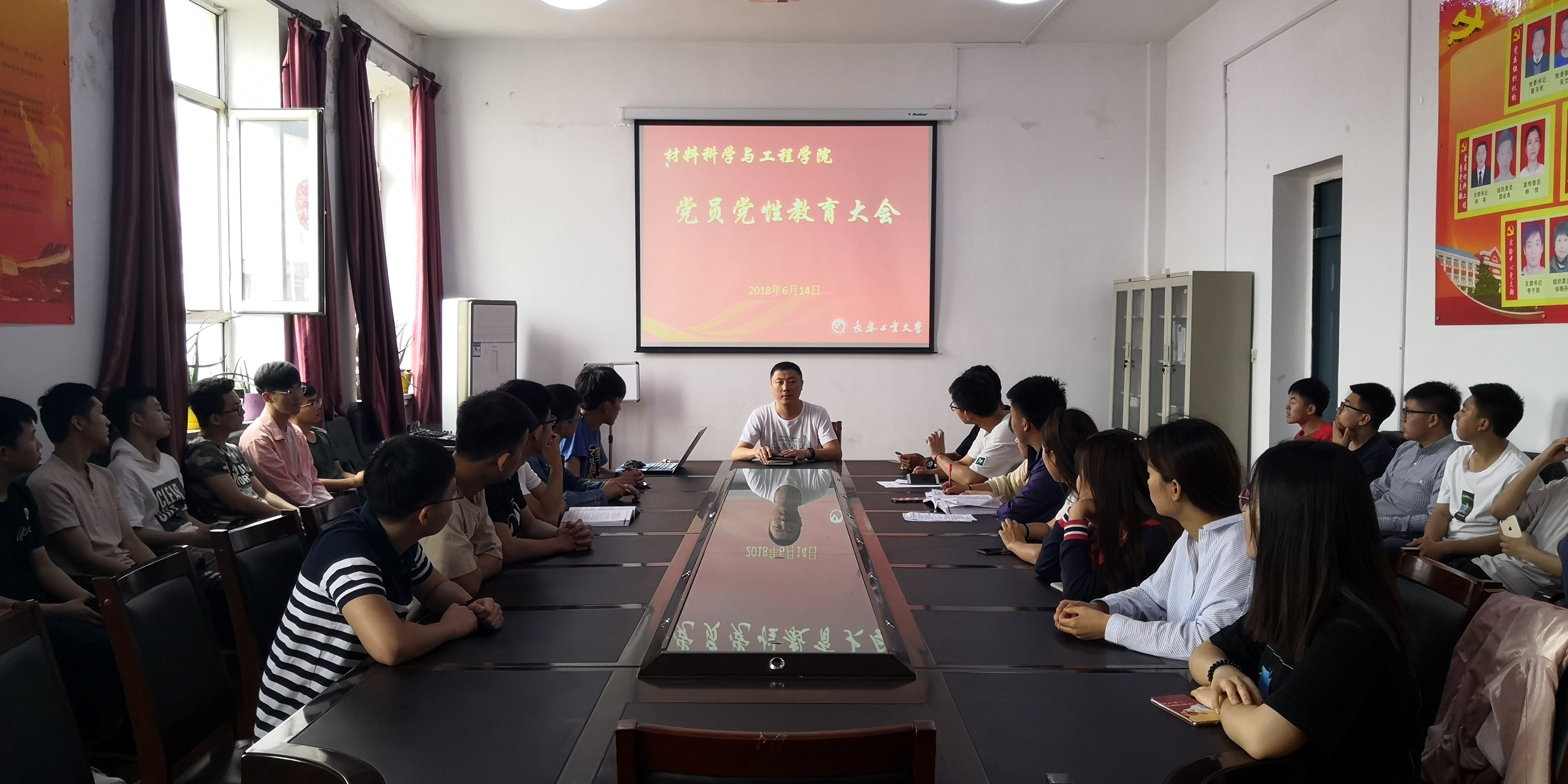 新媒体(通讯员 刘昭希)2018年6月14日,在yl6809永利官网集团五楼会议室召开了2015级党员党性教育大会,由邹绍岩主持,2015级全体党员、预备党员、积极分子参加会议。