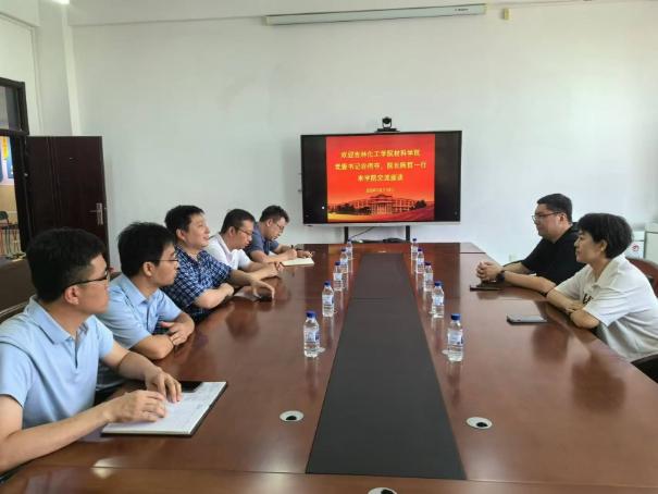 材院网讯(通讯员 王洋)8月19日下午,吉林化工学院yl6809永利官网集团党委书记谷伟夺、院长陈哲一行来我院调研交流。院长韩英热情接待了来访一行,学院相关负责人参加座谈交流。